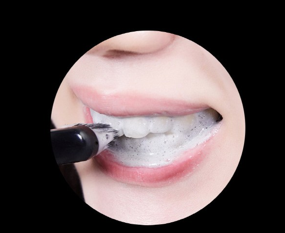 실제로 치약을 짜보면 왼쪽 사진과 같이 검은색이에요! 흔히들 검은색이면 치아에 착색되지않을까?! 가장 1차원적인 생각을 하실거에요 저도 그랬구요 ㅎㅎ 하지만 양치를 하시면 회색으로 변하게 되며 착색된 치아의 색을 새하얗게 해주는 차콜파우더때문입니다.