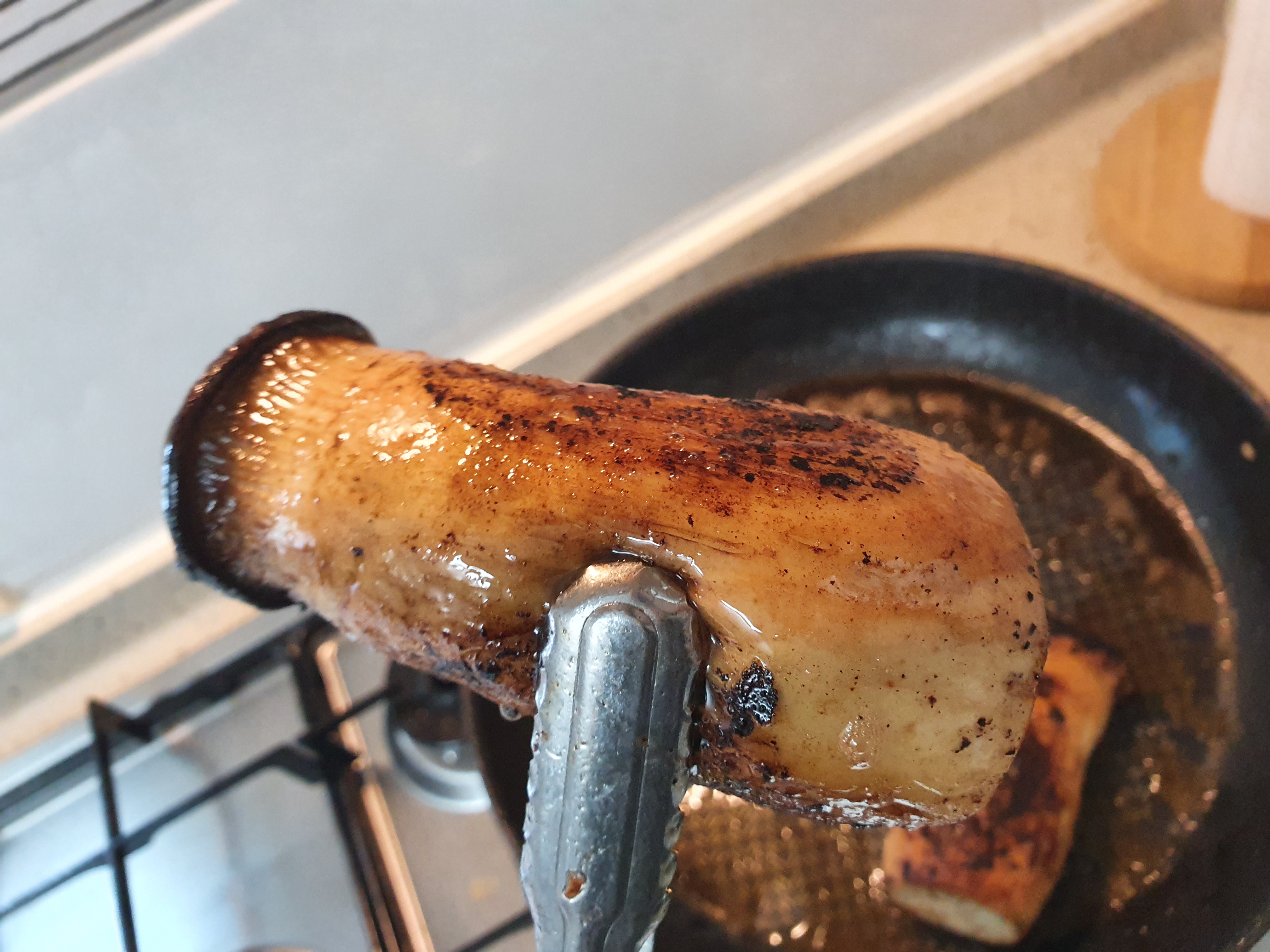 레스팅하는동안 고기를 구운 후라이펜에 송이버섯 통째로 구워서 가니쉬를 준비했어요! 송이는 통째로구워야 즙 가득 머금은 버섯을 즐길수있어요!