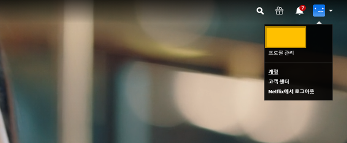 홈페이지 상단에 프로필 아래화살표를 누른 후 계정을 클릭합니다!