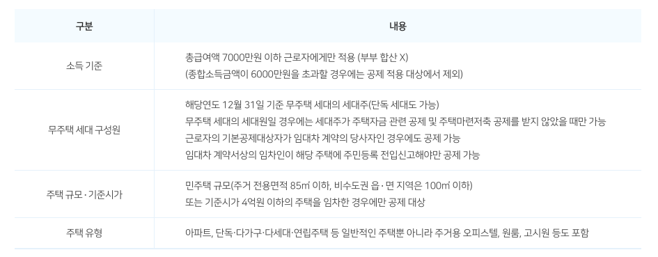 - 또한, 근로자가 해당 주택에 주민등록 전입신고를 완료해야만 공제 신청이 가능하다는 점을 잊지 마세요.