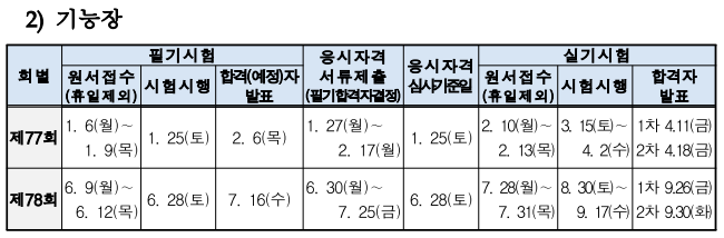 - 실기시험 일정: 필기시험 합격자에 한해 별도로 공지.
