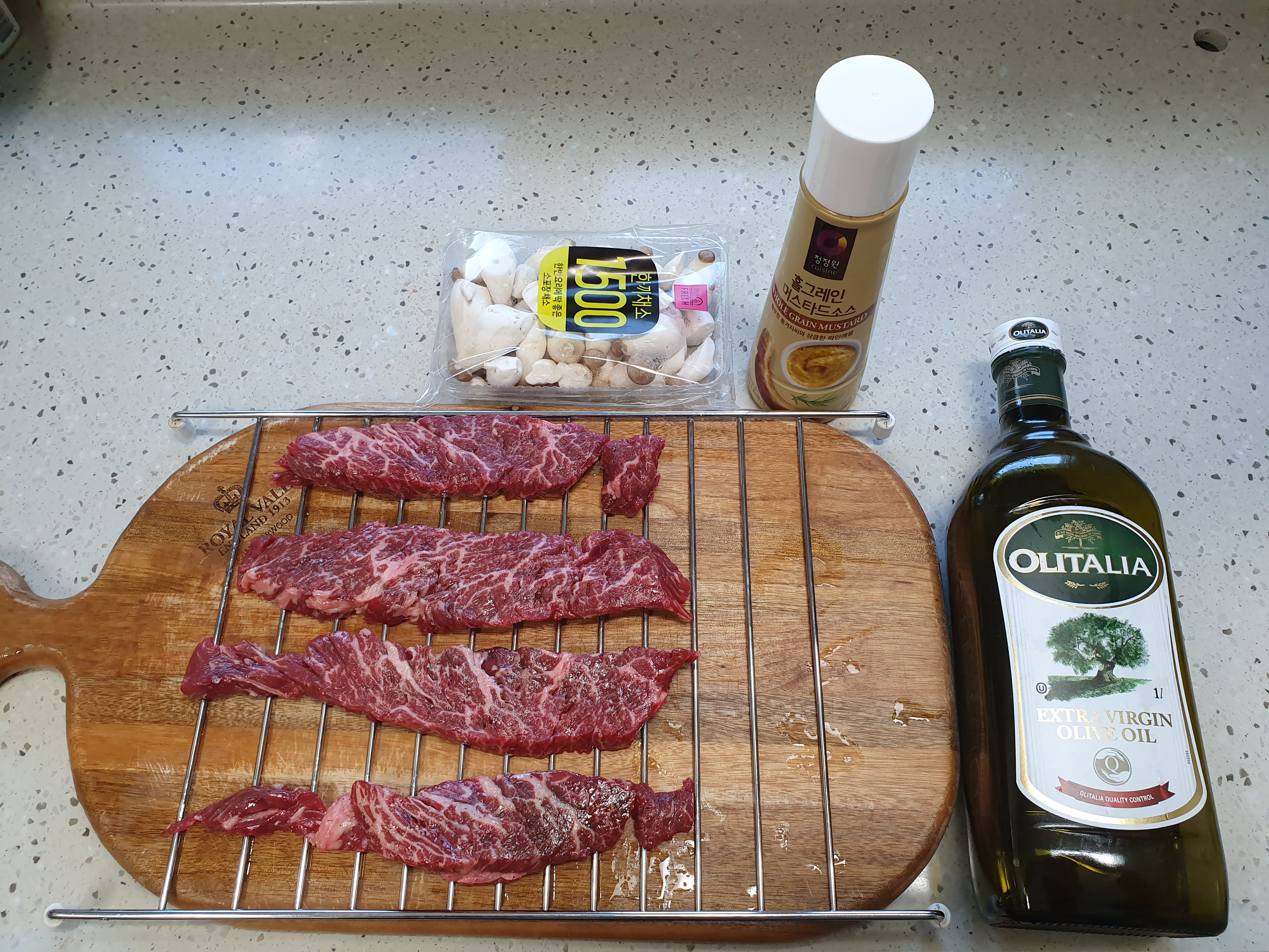 그래도 심심할까바 홀그레인 머스타드를 곁들여 주었더니 맛있더라구요:) 집에서 처음 스테이크를 구워 보았는데