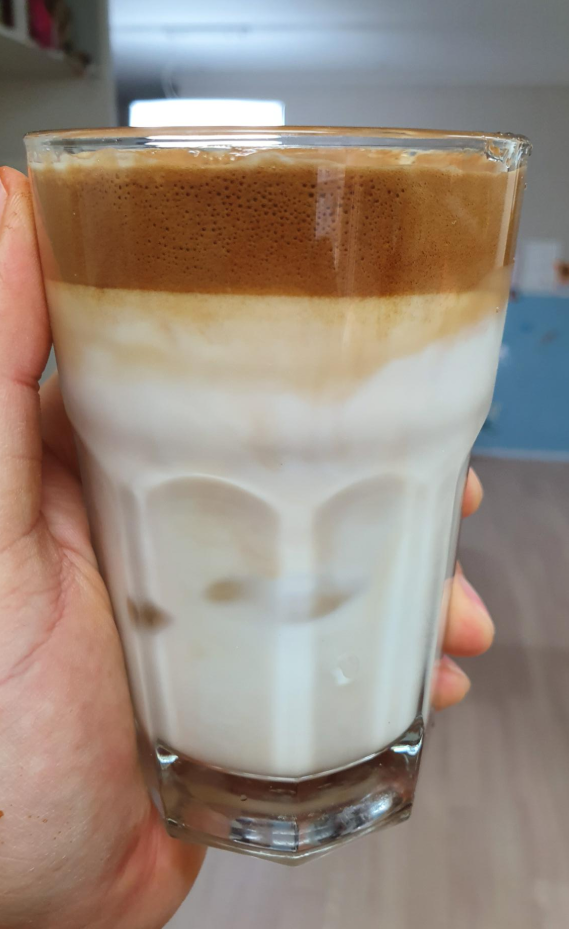 2잔 나누어 넣으니 딱 맞아 떨어지더라구요! 그렇게 우여곡절 끝에 완성한 달고나 라떼! 역시 뭐든 해보면서 배우는게